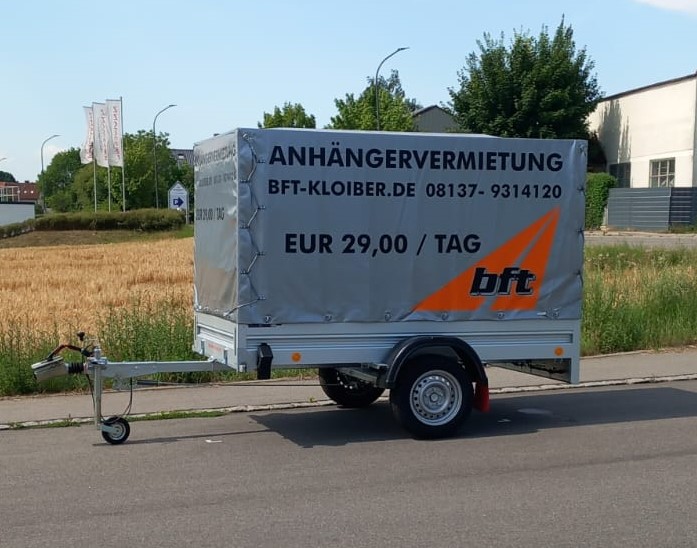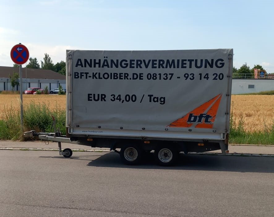 Für 34,– EUR/Tag oder 24 EUR/Halbtags - 2,51 m x 1,37 m bei einer Höhe von 1,53 m, Zuladungsgewicht 525 kg.